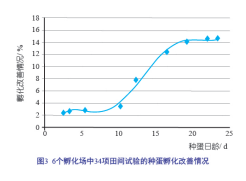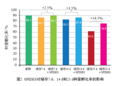在利用肉鸡及其父母代种蛋的试验中, 储存时间在短至 7 d 之内的种蛋实施 SPIDES 方法后能见到孵化率的提高 ( 图 2、 3)。