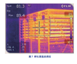 种蛋必须在孵化器中停留足够长的时间, 以使它们的蛋壳达到最低的 32 ℃ (90 ! ), 可通过小型标签记录器监测孵化器中的温度以确定热点和冷点, 并确保所有的种蛋达到目标温度 ( 图 6)。